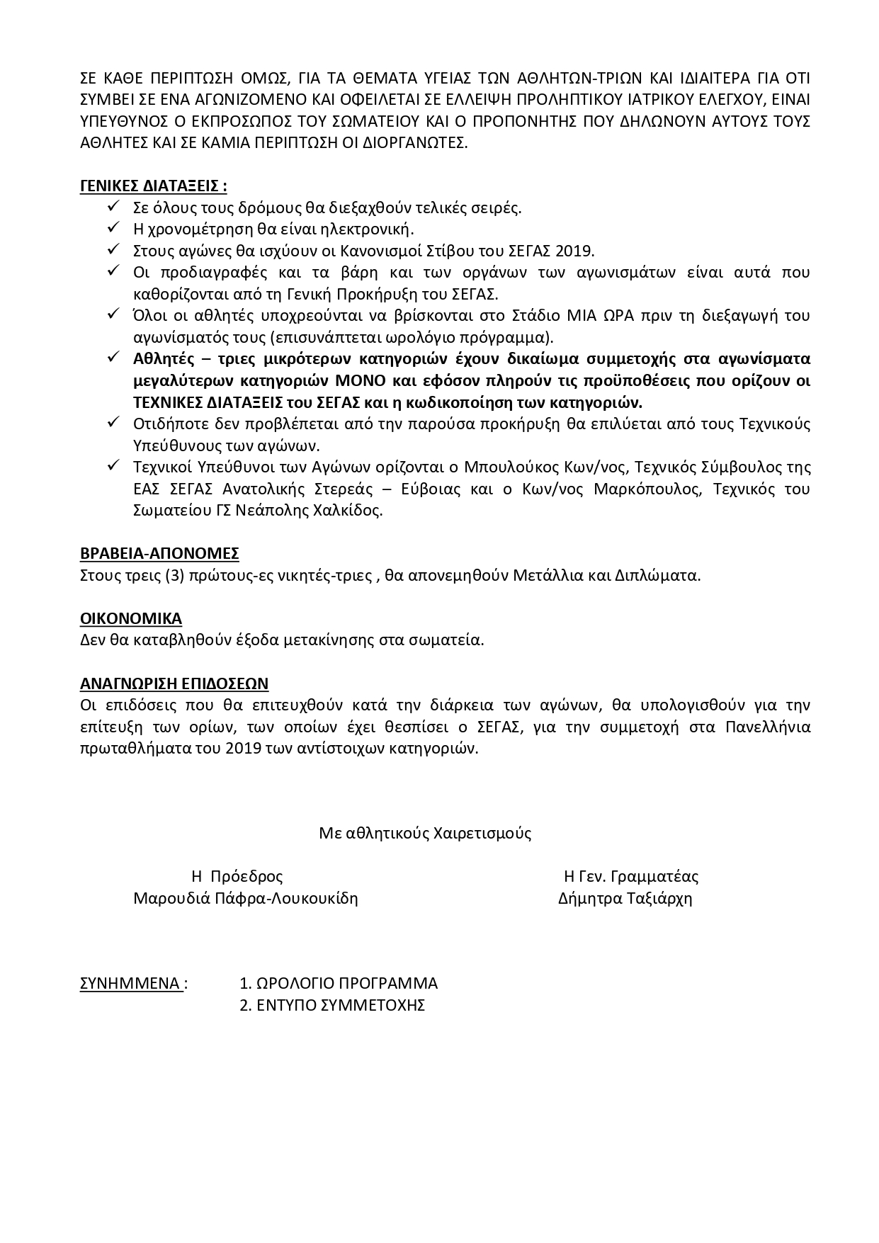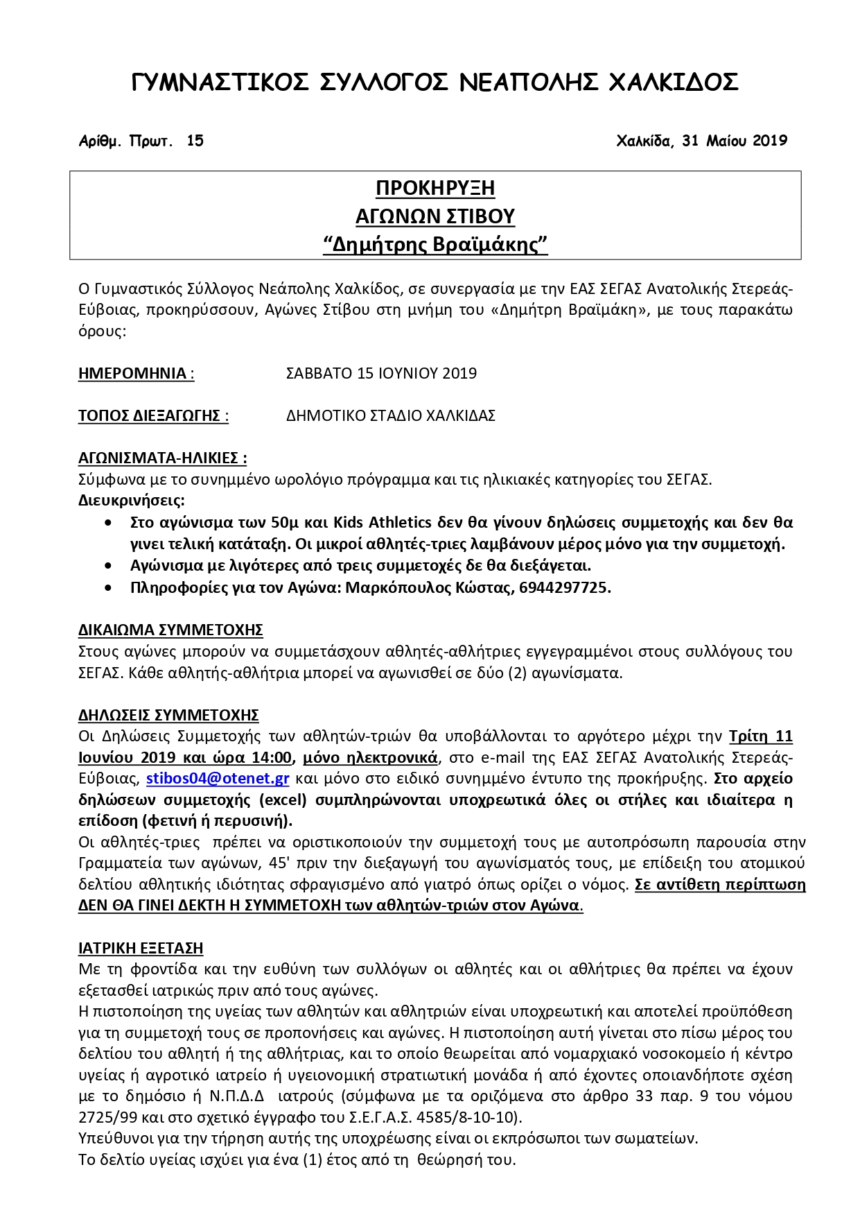 ΠΡΟΚΗΡΥΞΗ ΑΓΩΝΩΝ ΣΤΙΒΟΥ “Δημήτρης Βραϊμάκης” 2019
