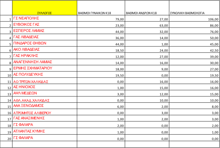 Στις 19 Μαΐου, διεξήχθη το Διασυλλογικό Πρωτάθλημα Κ18 στην Χαλκίδα, όπου ο Γ.Σ. Νεάπολης Χαλκίδας κατέκτησε την πρώτη θέση στην Ε.Α.Σ. ΣΕΓΑΣ Αν. Στερεάς & Εύβοιας με συνολική βαθμολογία 106 βαθμών. Όλοι οι αθλητές της ομάδας σημείωσαν εξαιρετικές επιδόσεις και κατέκτησαν πολλές νίκες.