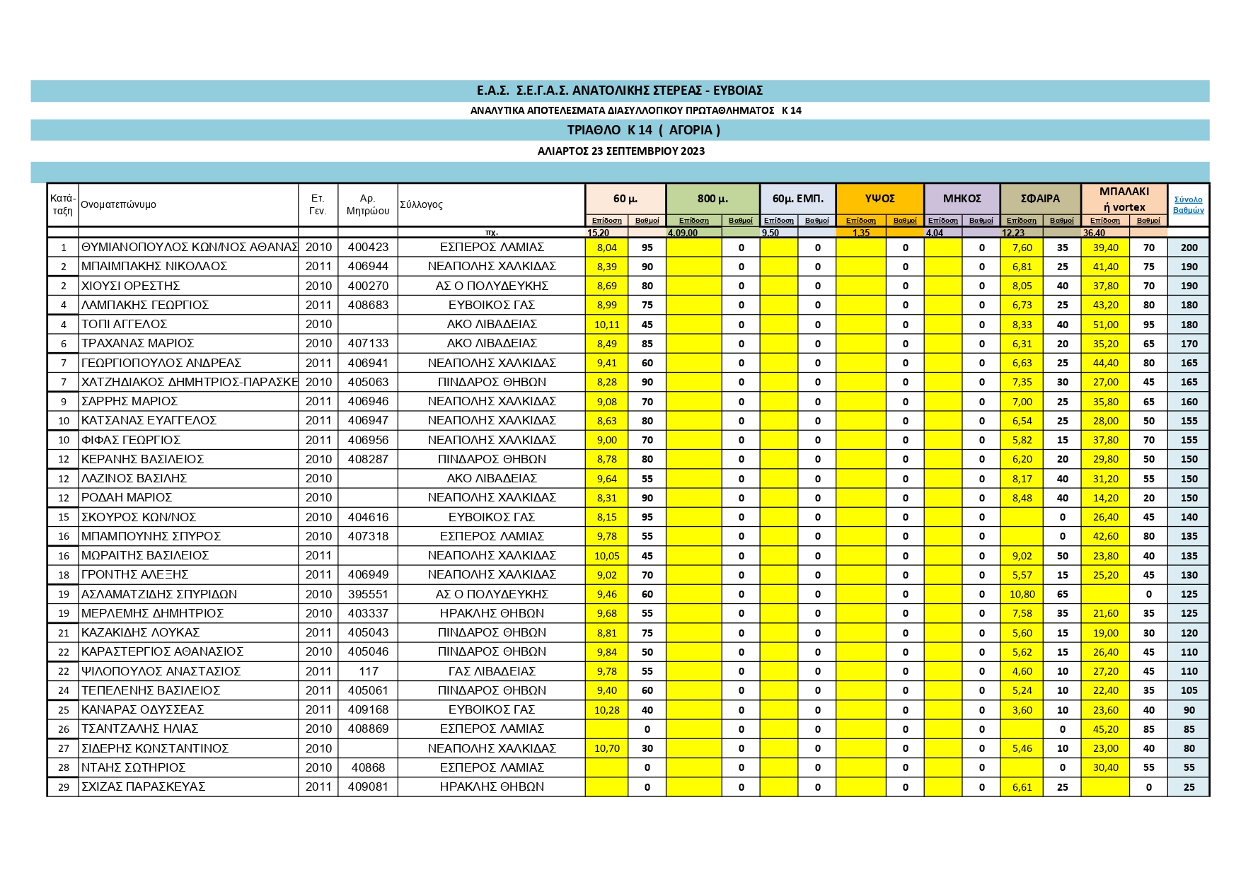 | 23 | ΜΩΡΑΙΤΗΣ ΒΑΣΙΛΕΙΟΣ | ΝΕΑΠΟΛΗΣ ΧΑΛΚΙΔΑΣ | 10.05 |