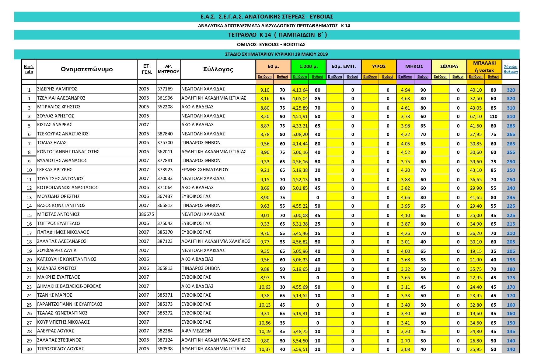 8η θέση Γ.Σ. ΝΕΑΠΟΛΗΣ ΧΑΛΚΙΔΑΣ με επίδοση 45,44