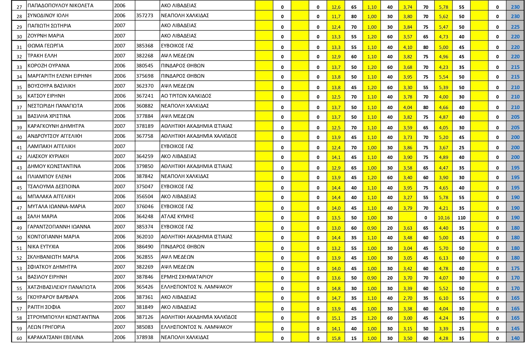 5η θέση ΓΕΡΑΣΗ ΙΡΙΣ με επίδοση 58,70