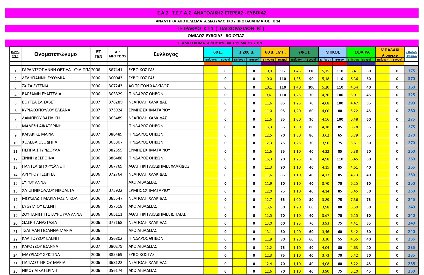 ΘΩΜΟΠΟΥΛΟΥ ΕΛΕΝΗ με επίδοση14,11